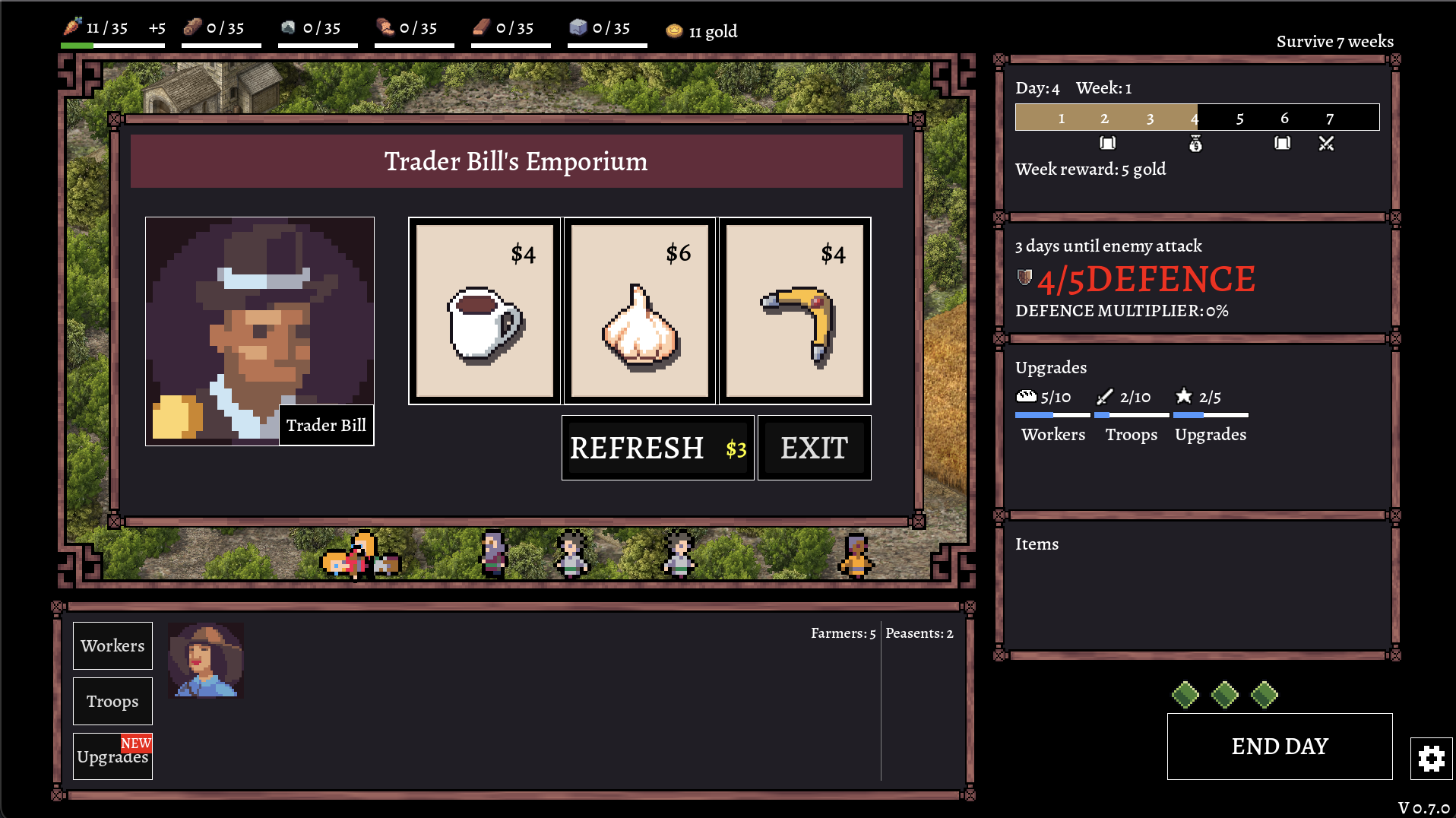 I liked the game, but it is hard to predict if I am going to survive the week. The cost of units increase by unpredictable amounts and it screwed me over a couple times.